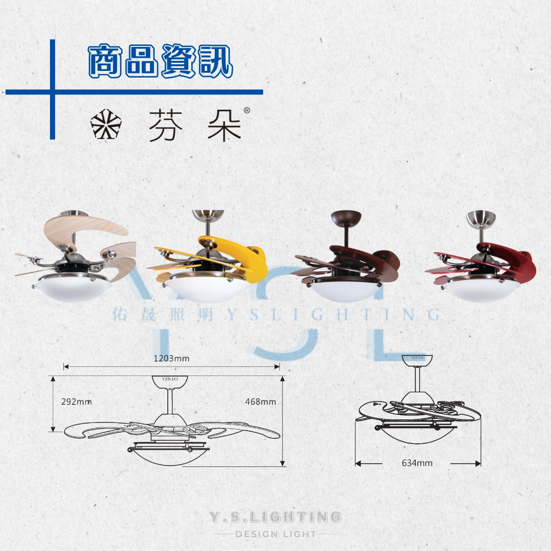 搭載台灣製DC馬達與40W LED燈光,靜音節能,光影柔和,為空間注入清新氣息與細緻品味。