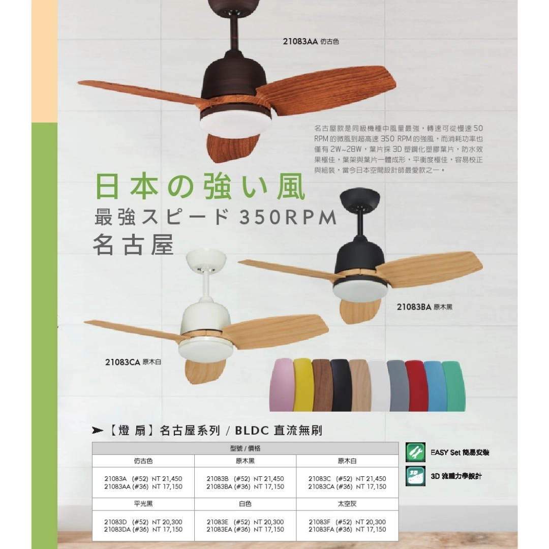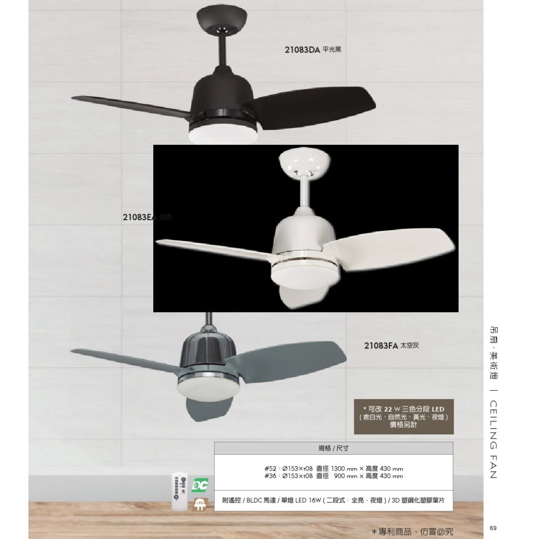 葉片採用3D塑鋼化葉片,適合潮濕環境防水效果極佳,