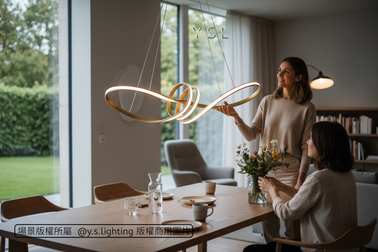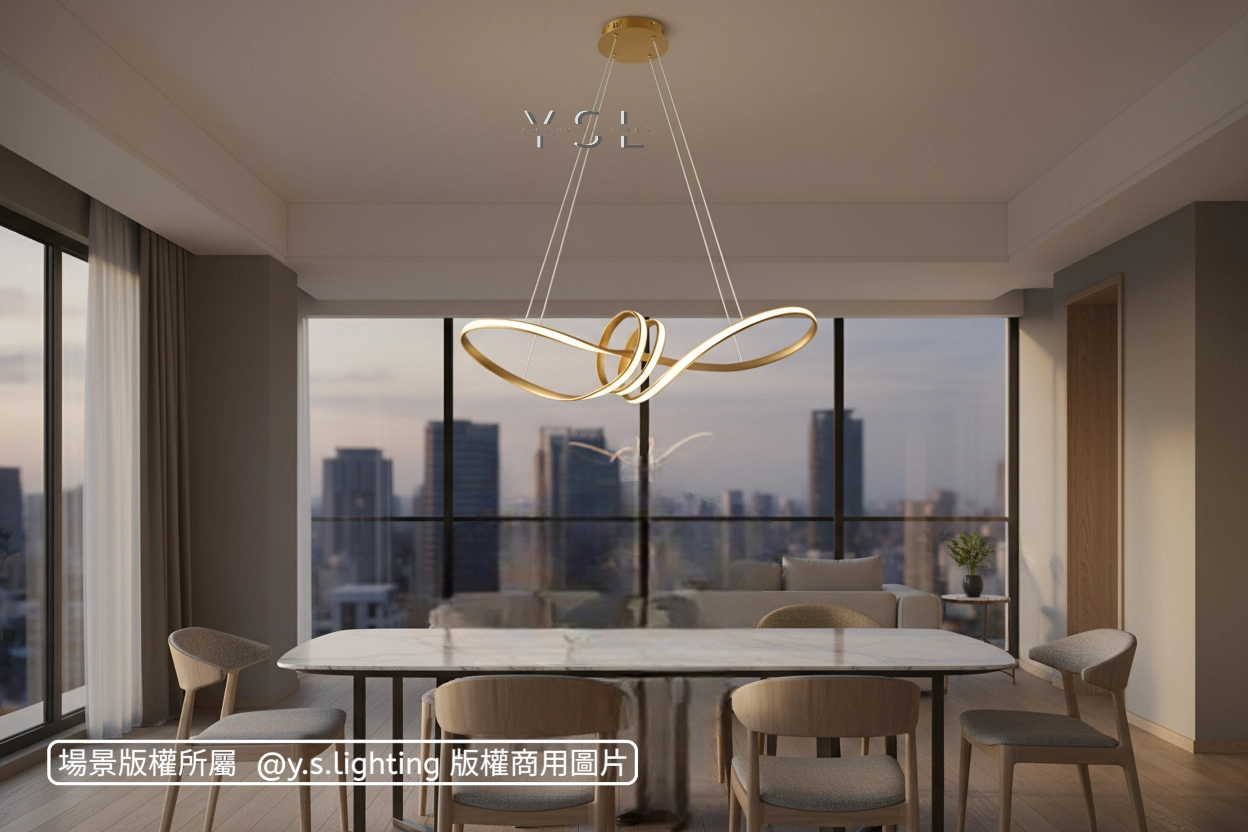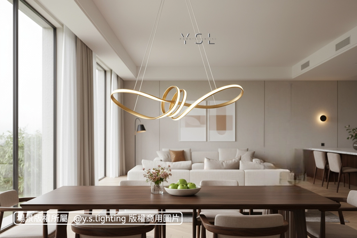 優雅的曲線在空間中自由舞動,創造視覺焦點注入一場無聲的光影盛宴,讓每一次的用餐,都彷彿置身一場光影交織的盛宴。