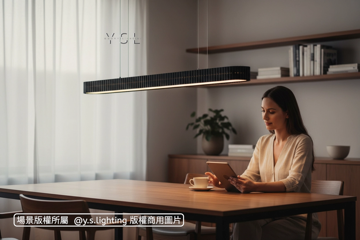 連綿格柵在空間中寫下優雅的故事,不只是一盞燈,是吸引目光並自由點亮私人領域的藝術品,滿足您在不同情境下的光線需求。無論是浪漫晚餐、專注閱讀、或是明亮的工作環境,目光場域都能完美配合。