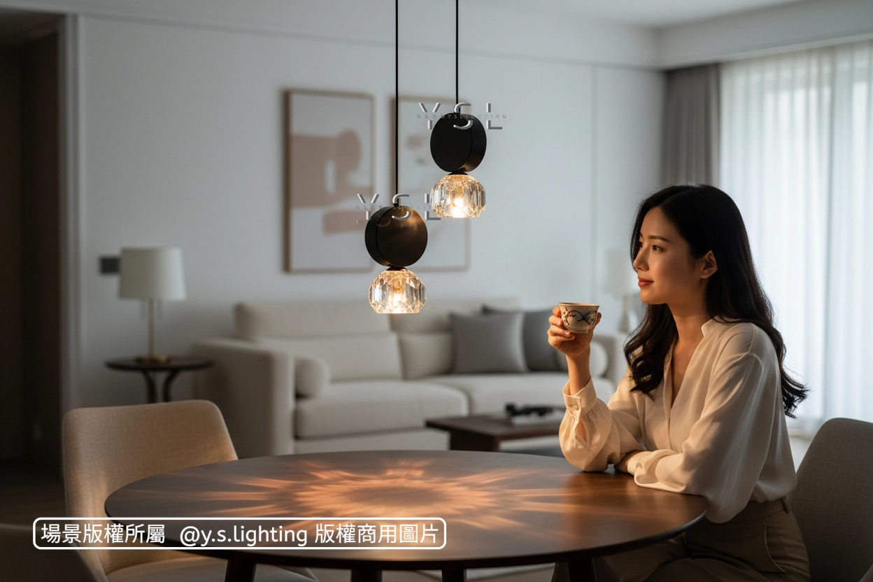 獨特的切割工藝,使光線穿梭於晶瑩剔透的燈罩之間,折射出如鑽石般璀璨的光芒,在牆面、桌面甚至是空氣中,舞動出迷人的光影。