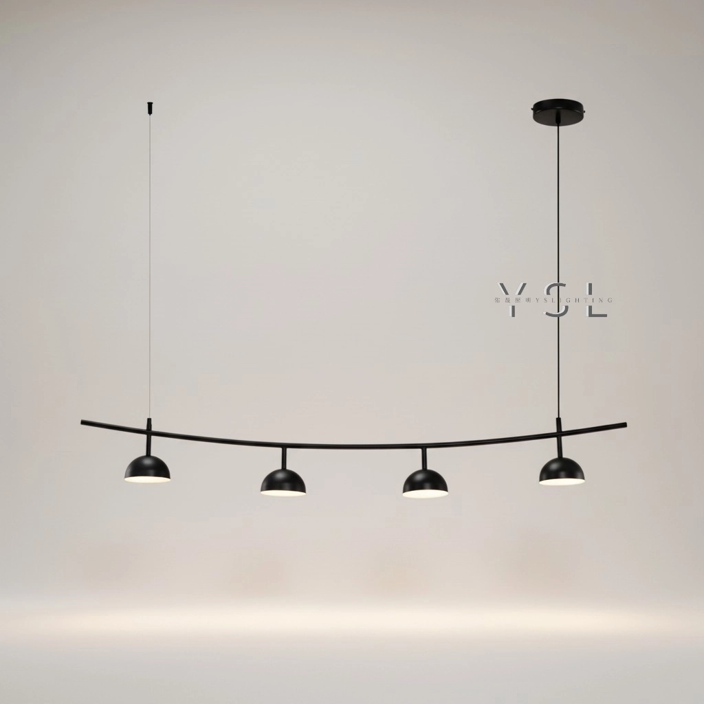 四個獨立燈頭光線分佈更均勻,讓餐桌上的每一處都明亮溫馨,添上一輪明月以簡約的線條,勾勒出優雅的弧度,宛如一彎新月輕柔地灑下光芒,照亮每一道佳餚每一張笑顏。