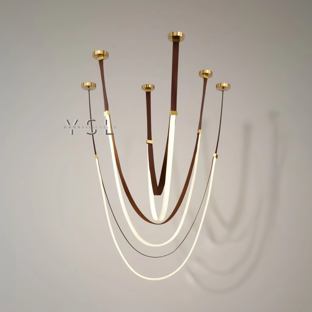如畫筆般揮灑,在您的空間中譜寫出獨一無二的旋律,能將光幻化成藝術的臻品,獨特的設計靈感來於精緻的皮革背帶,將光與影巧妙地結合,營造出令人驚豔的視覺效果,在空中輕盈旋轉用光影的語言,訴說著家的溫馨與美好。