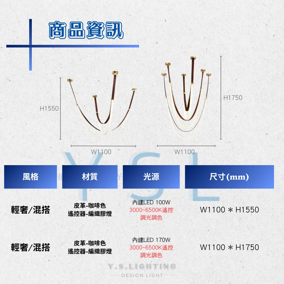 光源:LED 100W(內贈)(遙控器調光調色)-2條