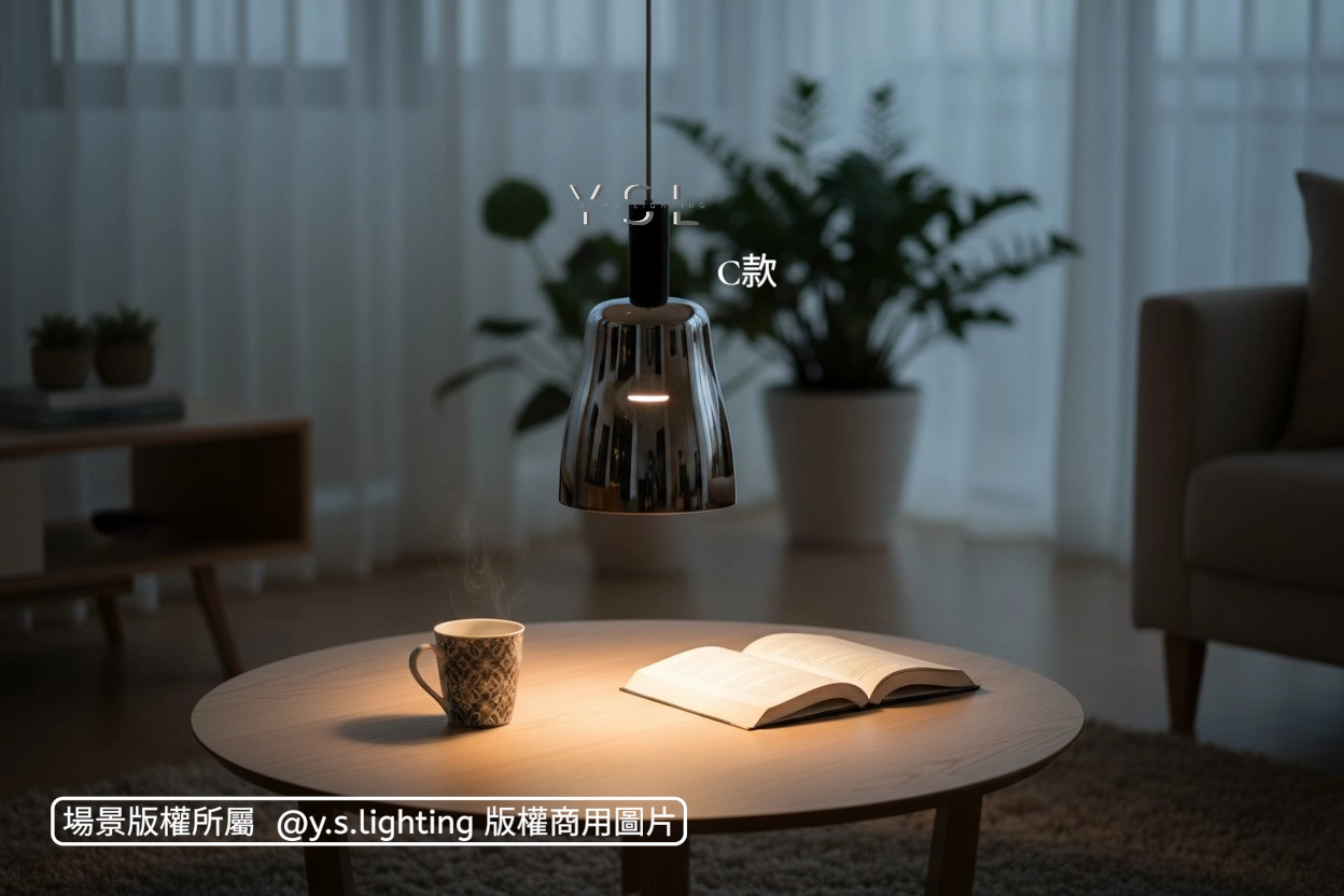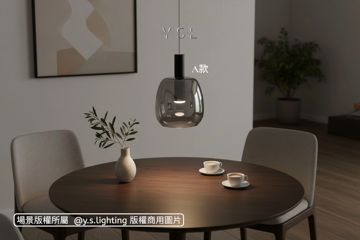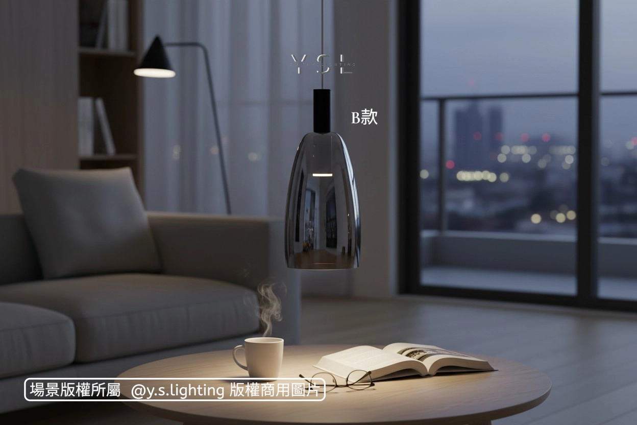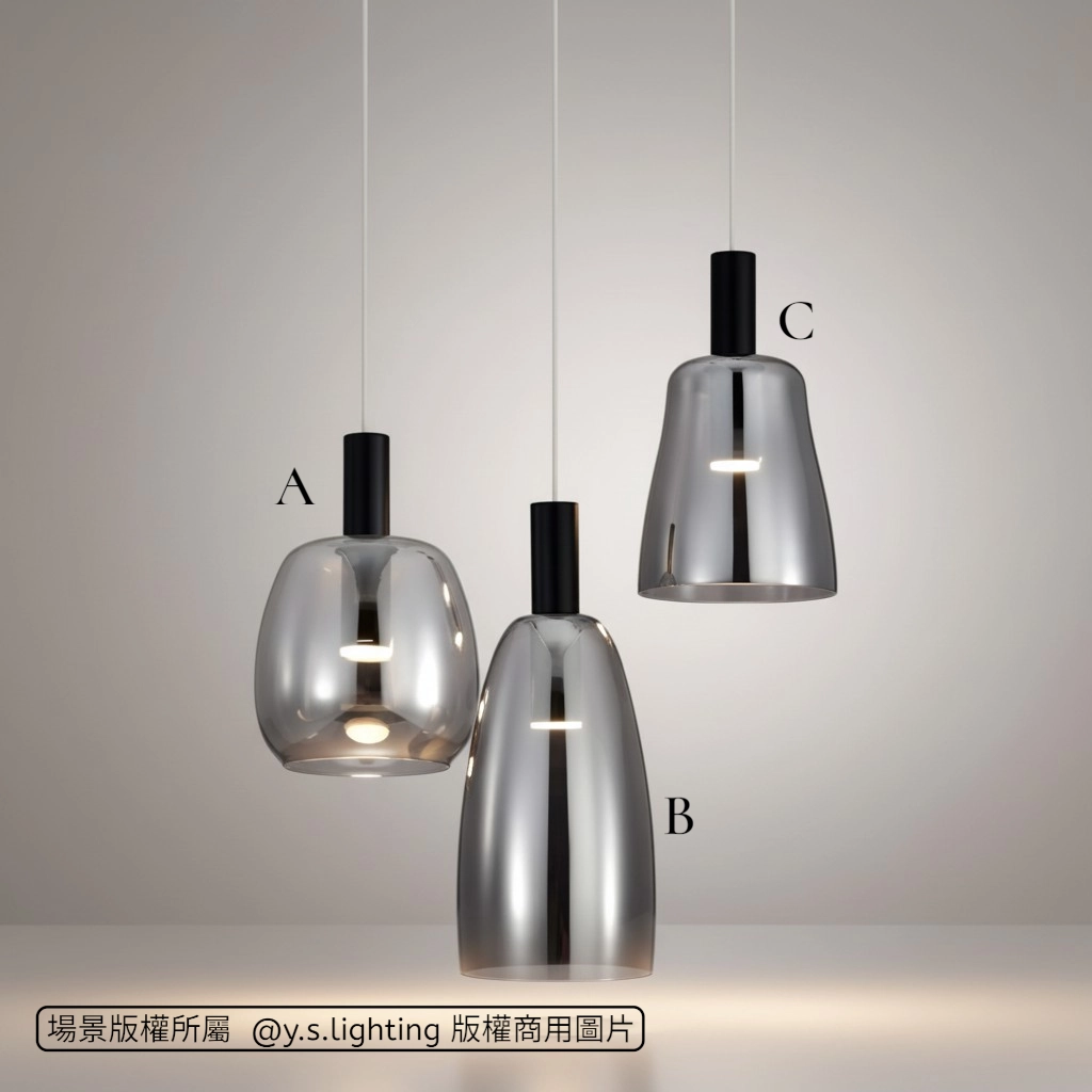 玻璃燈體的細膩吹製工藝呈現三種造型,柔和燈光輕灑倒映於空間中,光影之間細膩動人更能顯示他的質感