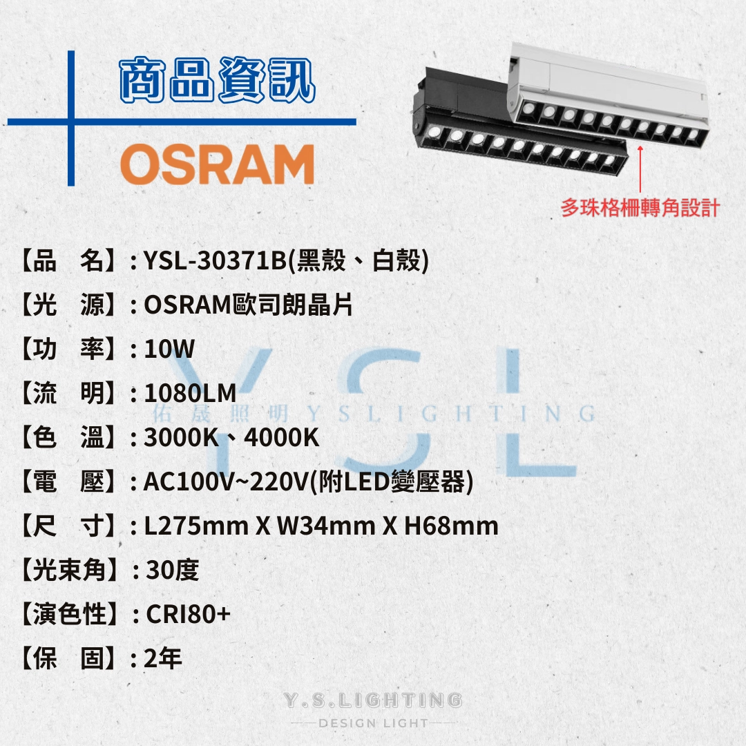 10W │ 彎折格柵-軌道燈