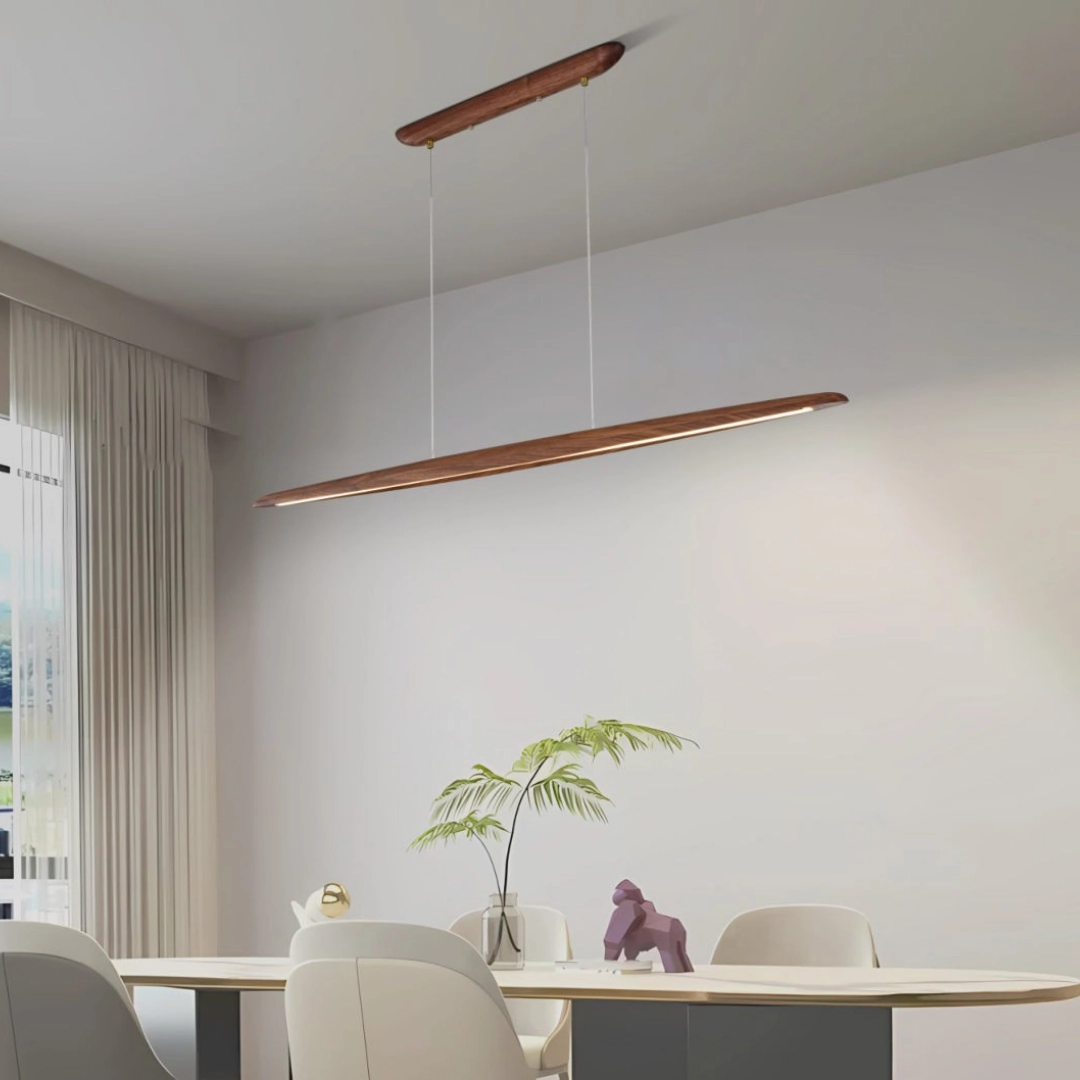 在光與影的交織中,尋找空間的靈魂。光影流梭LED吊燈,以簡約的線條,勾勒出不凡的品味,當您走進餐廳,映入眼簾的是這盞流梭雅木吊燈,它如同夜空中一道流星,劃破寂靜,點亮希望。木質燈體散發著淡淡的木香,與室內的裝潢相互輝映,營造出一個溫馨舒適的用餐氛圍。