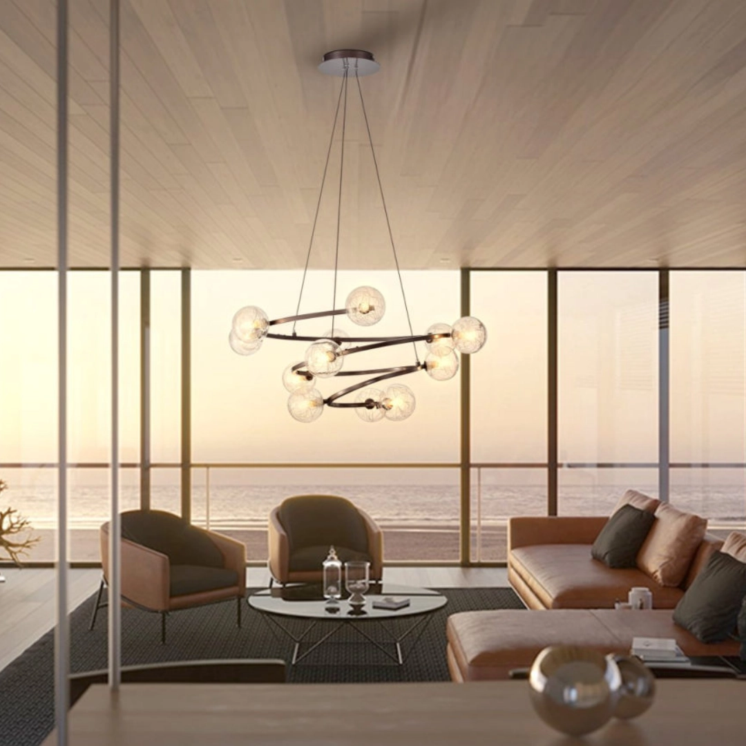 三層迴旋結構,呈現出動感十足的視覺效果,讓您的空間更具層次感。讓光芒在您的空間中舞動,帶來前所未有的視覺饗宴。旋繞星夜吊燈,以其獨特的設計和精湛的工藝,將星空的神祕與現代的簡約完美結合。當您步入室內,擡頭仰望,那閃爍的光芒如同夜空中旋轉的星辰,為您的生活注入無限的浪漫與想像。