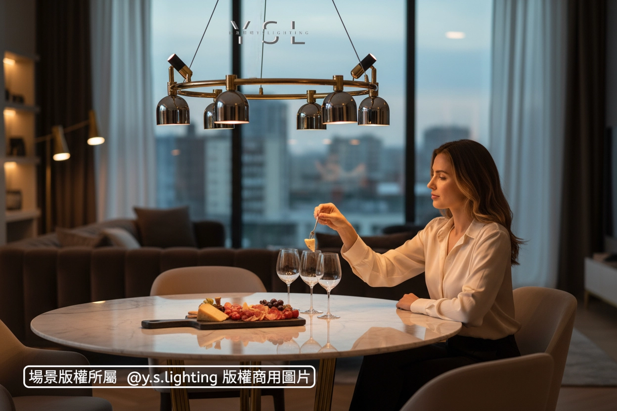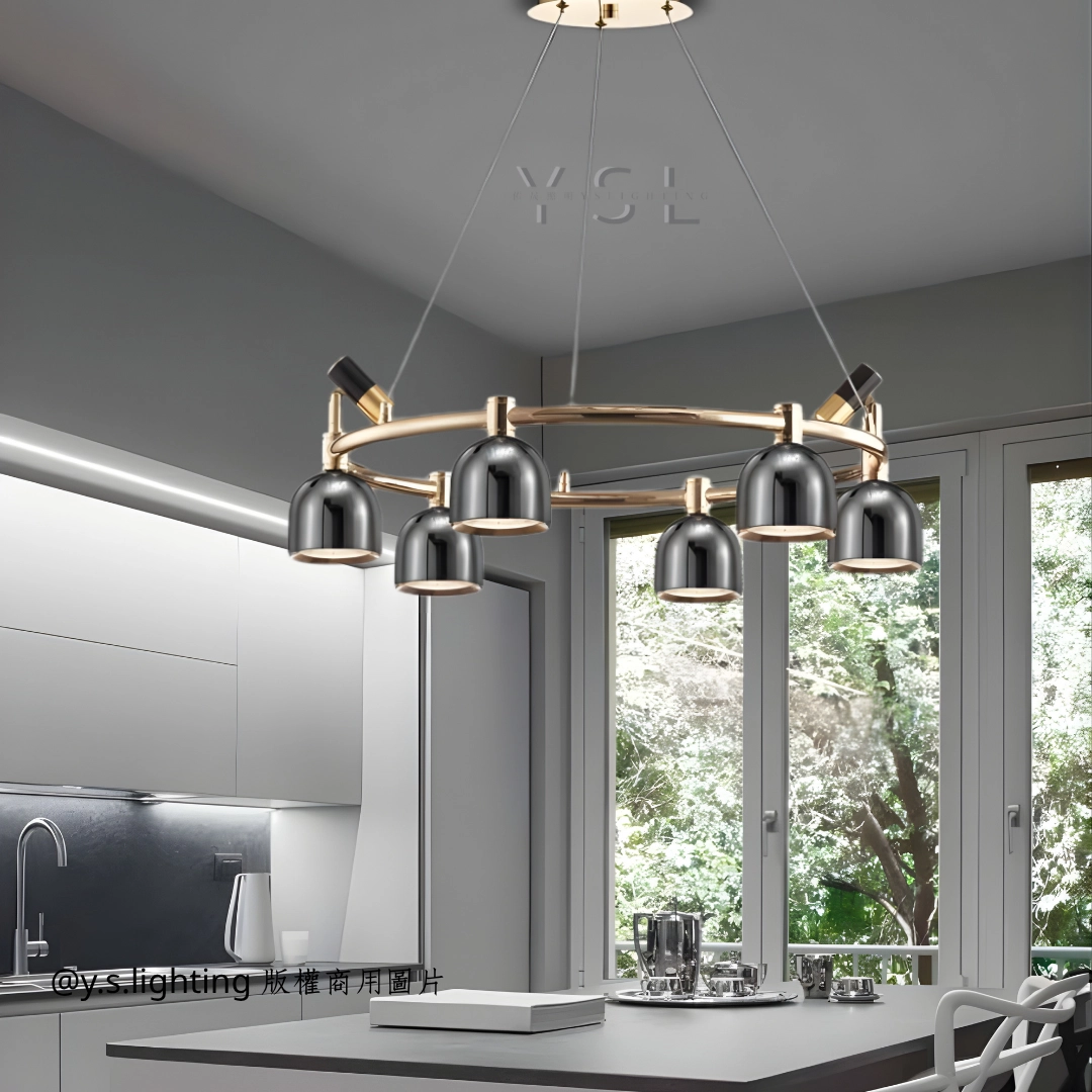 金屬材質,經過精湛的工藝處理,呈現出細膩的質感和光澤,彰顯您的不凡品味。搭配多個精巧的燈罩,營造出均勻而柔和的光線,讓整個空間都沐浴在溫馨的光芒中。