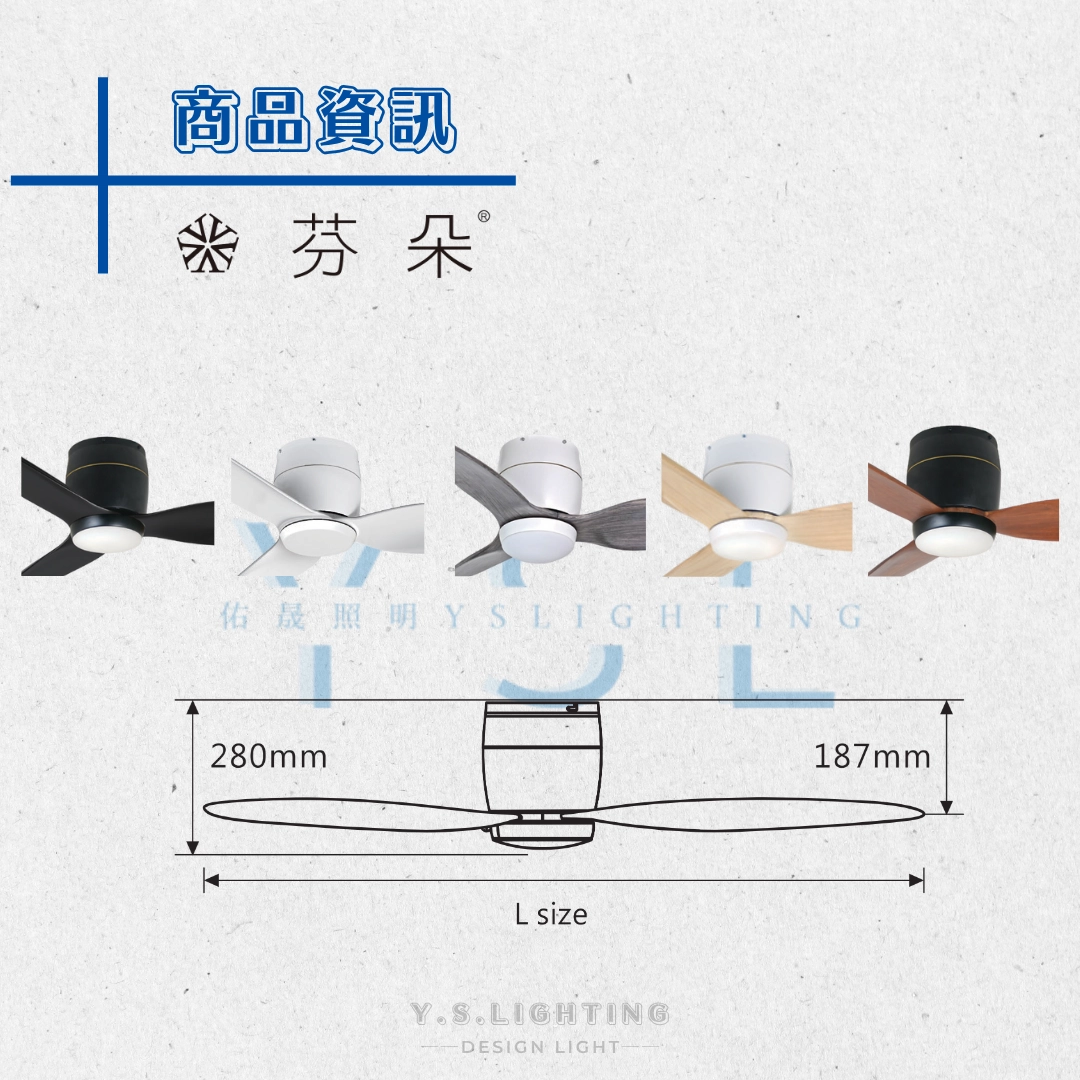 搭載高效節能的 DC 馬達,提供 36”、42”、54” 三種尺寸與多達五款扇葉色彩,輕鬆打造專屬於您的個性風格。